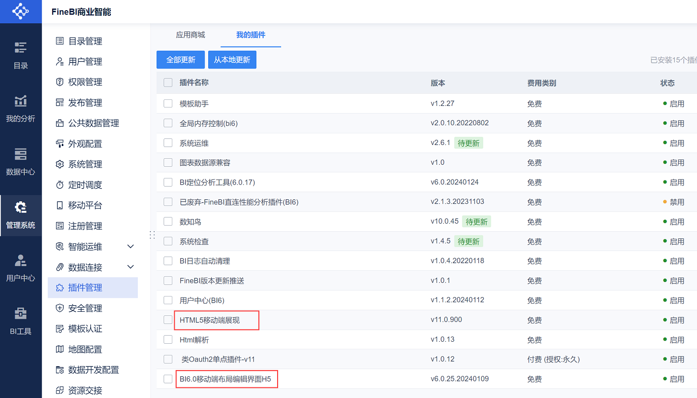 PC端FineBI的目录链接为:http://localhost:37799/webroot/decision#/directory