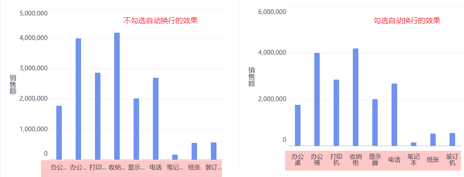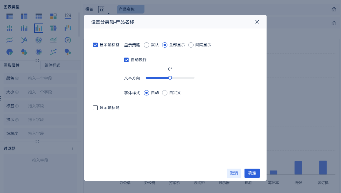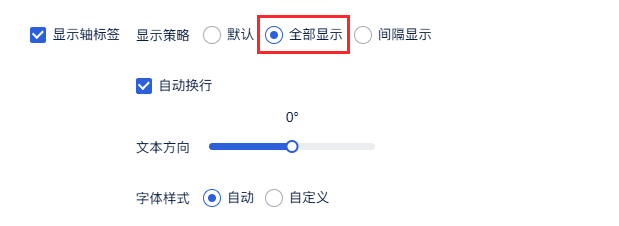 全部显示时,用户可设置轴标签是否自动换行和文本方向: