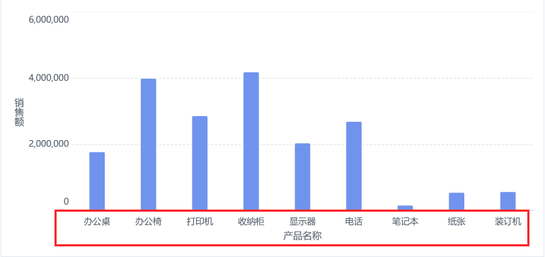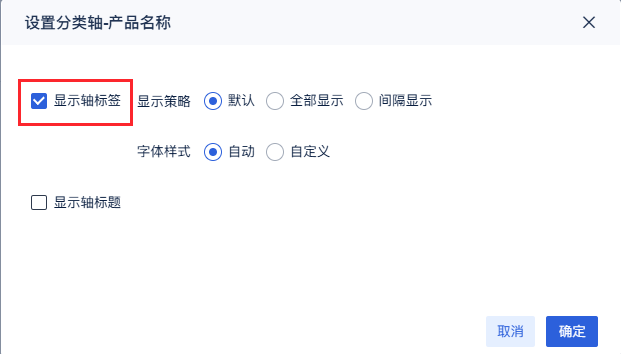 | 策略二:全部显示 | 显示全部的轴标签。 默认策略下,若轴标签较多,会只显示部分轴标签。若用户希望显示全部轴标签,可选择「全部显示」