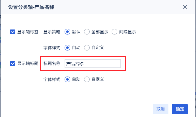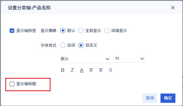 进入分类轴样式的设置界面,用户可对轴标签和轴标题进行设置。如下图所示: