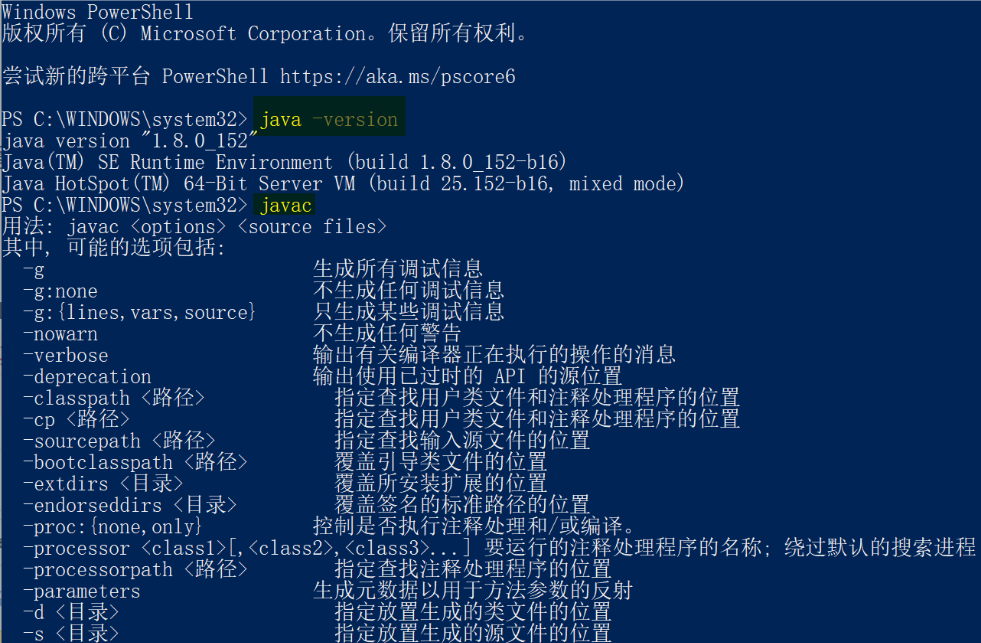 输入 java -version 和javac ,出现如下则表示 JDK 安装成功: