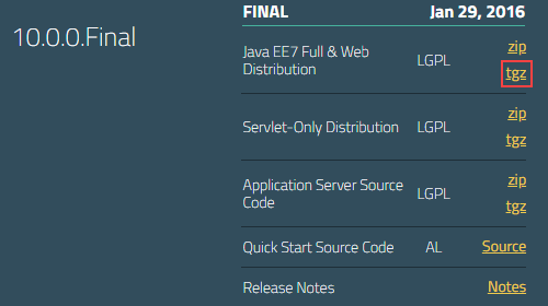 | 下载WildFly | 下载链接:wildfly