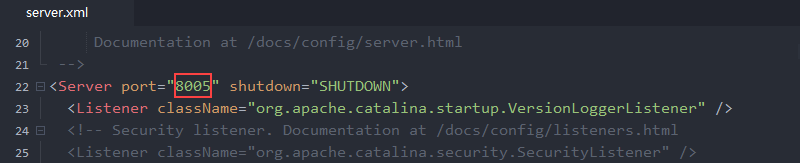 若该服务器下存在多个Tomcat,需要额外修改该端口,默认为 8005 。