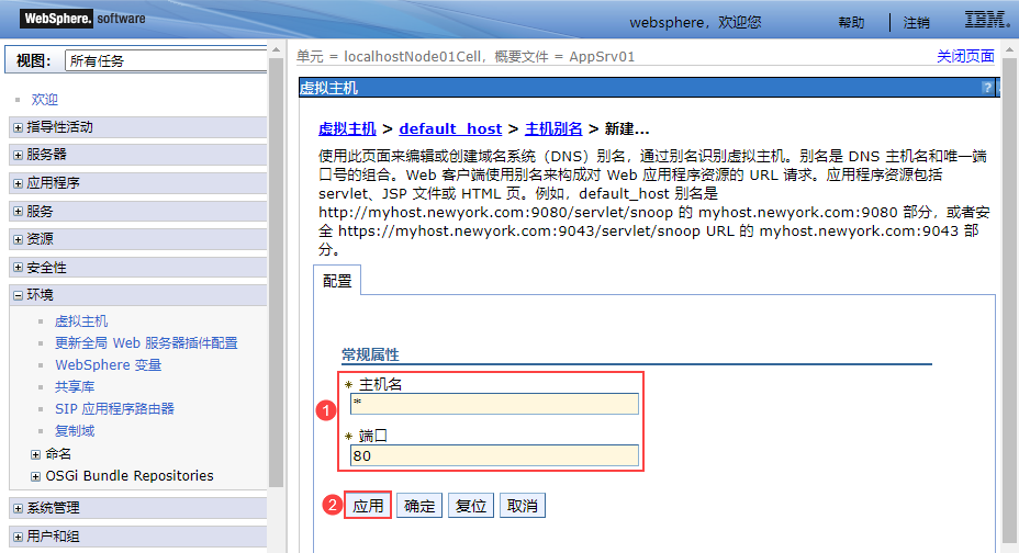 浏览器端访问 WebSphere 控制台,形如http://<WebSphereServer>:9060/ibm/console