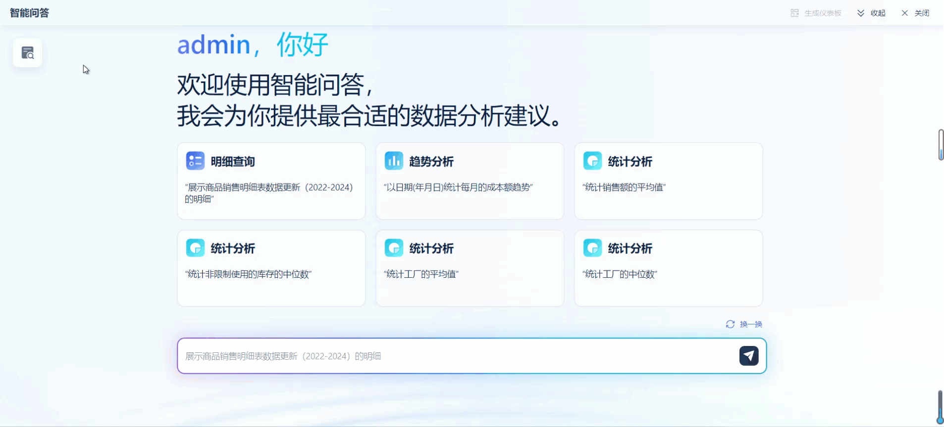 IT 管理员会提前为业务人员准备提问数据,所以进入 FineChatBI 后,用户可以直接进行提问。如下图所示: