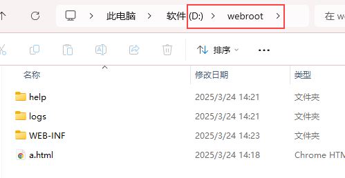 本文将%Tomcat_home%\webapps\webroot文件夹移动到D:\webroot路径。如下图所示: