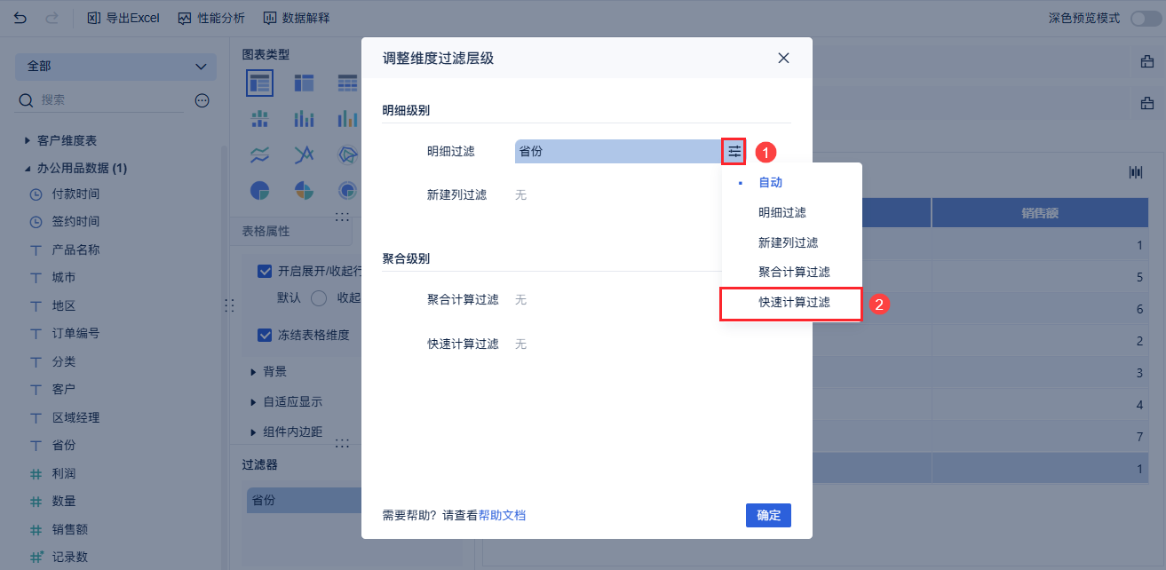 支持用户调整维度的过滤层级到「快速计算过滤」。