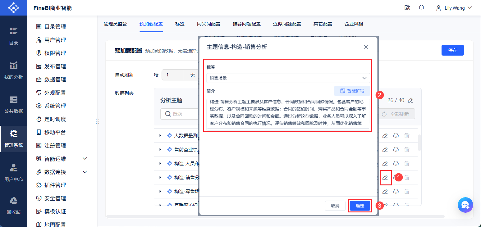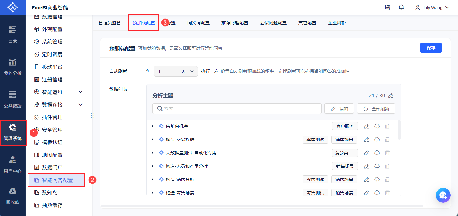 便于用户选择提问数据:管理员会为预加载的主题添加标签,方便业务用户快速选择提问的数据,提高选择效率。