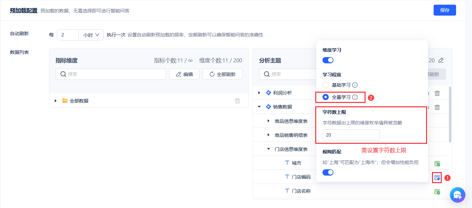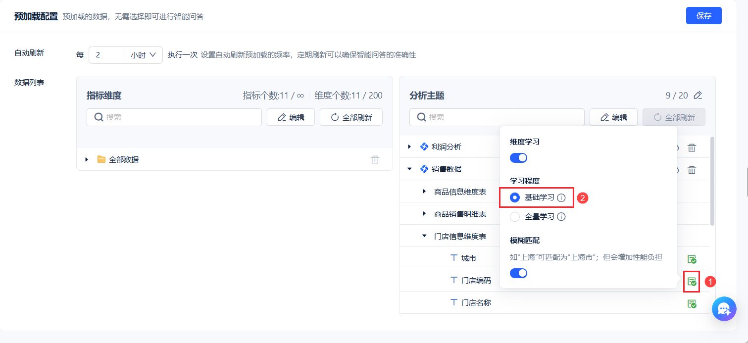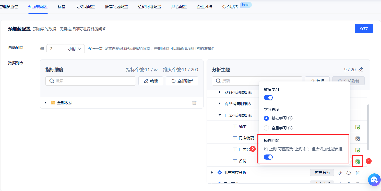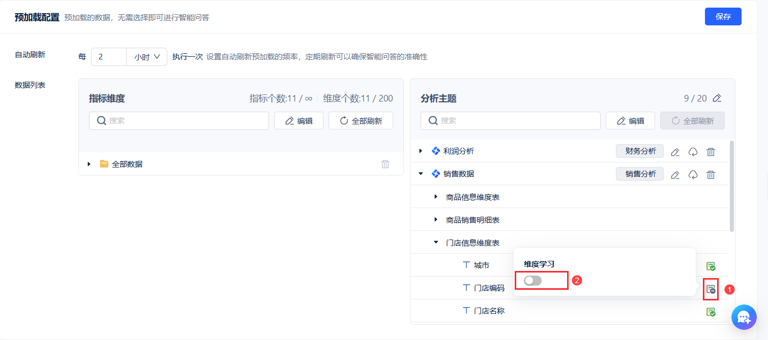 由于数据库中的数据是会变动的,所以需要刷新预加载数据中维度值,确保问答BI能获取到最新的维度值。