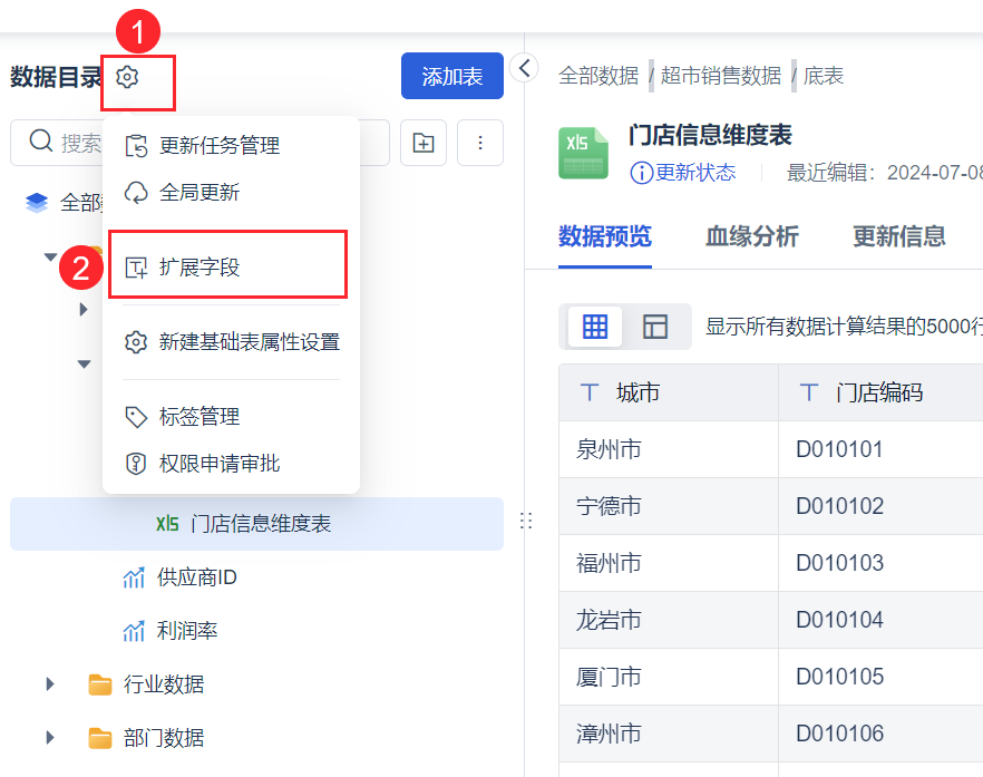 在数据目录预览时,点击「数据详情」可修改扩展字段。
