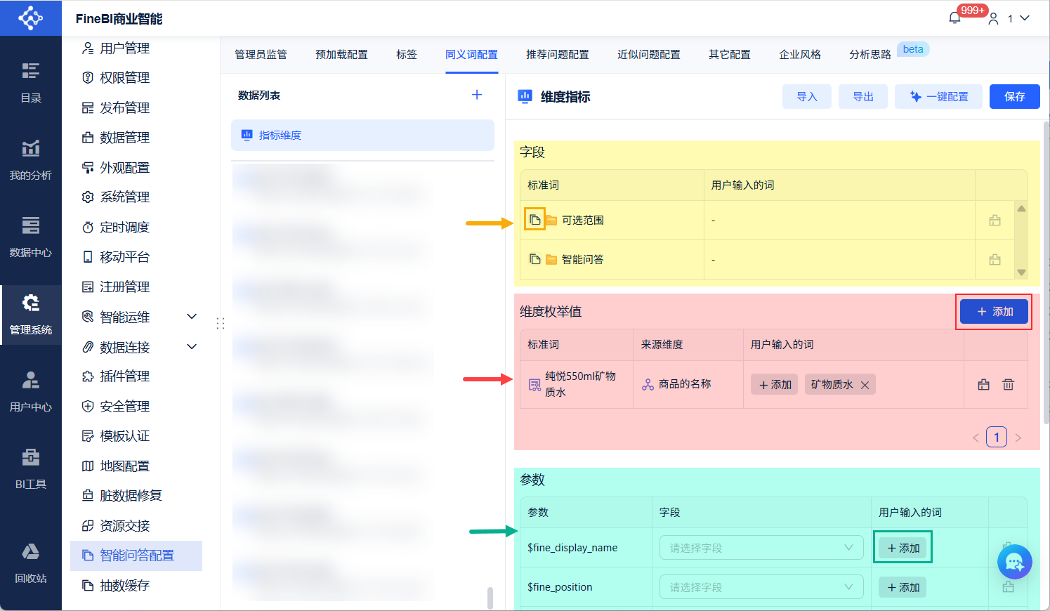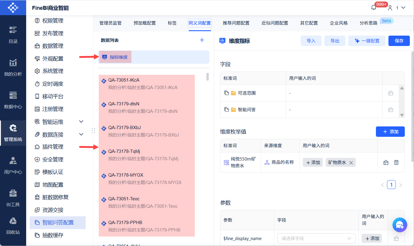 在 FineBI 中,同义词配置是提升问答系统精准度的重要手段。