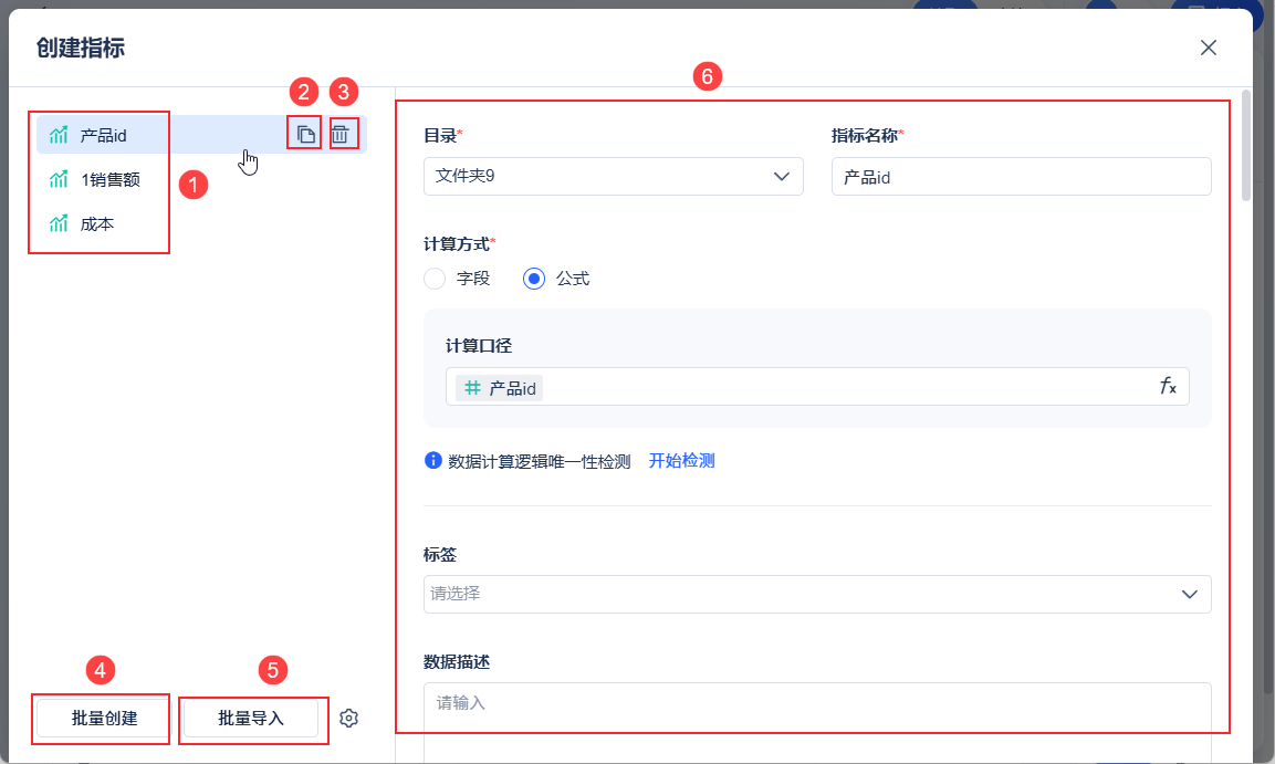 发布前可检测「数据计算逻辑唯一性检测」,检查是否已有同义指标。