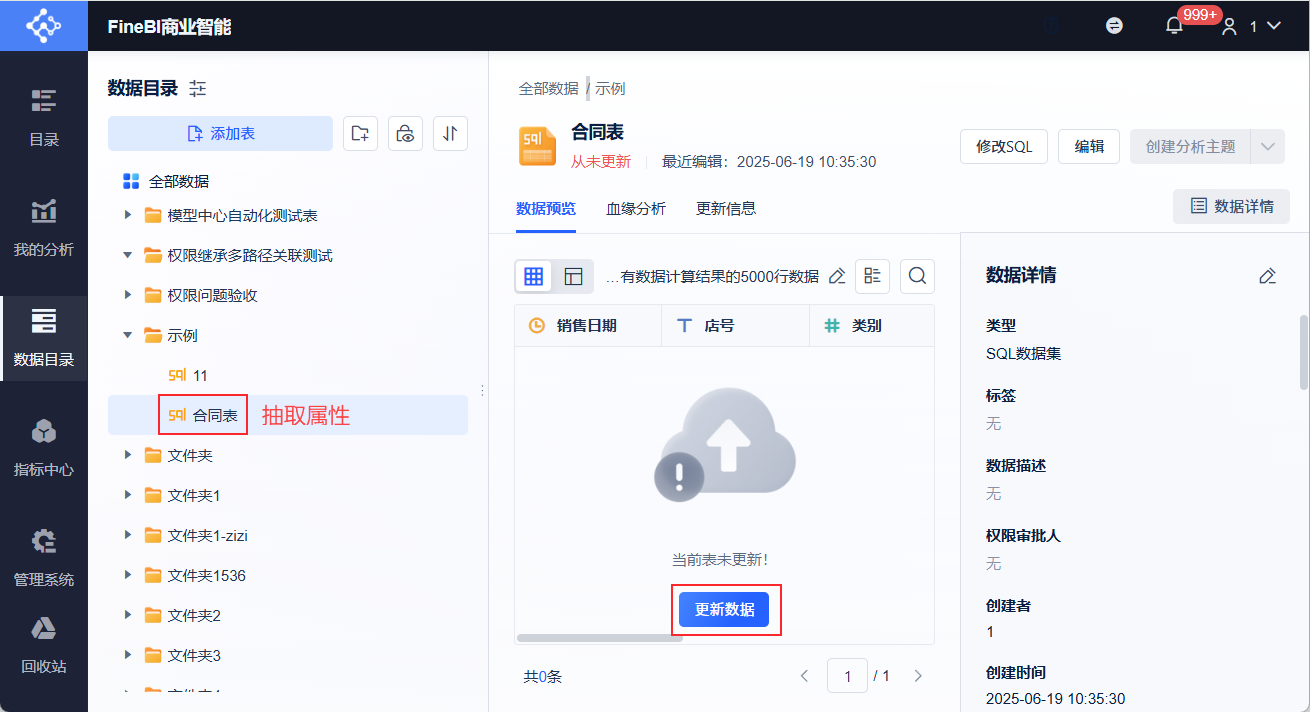 直连属性的 SQL 数据集添加后可直接使用,抽取属性的则需要更新后使用。如下图所示: