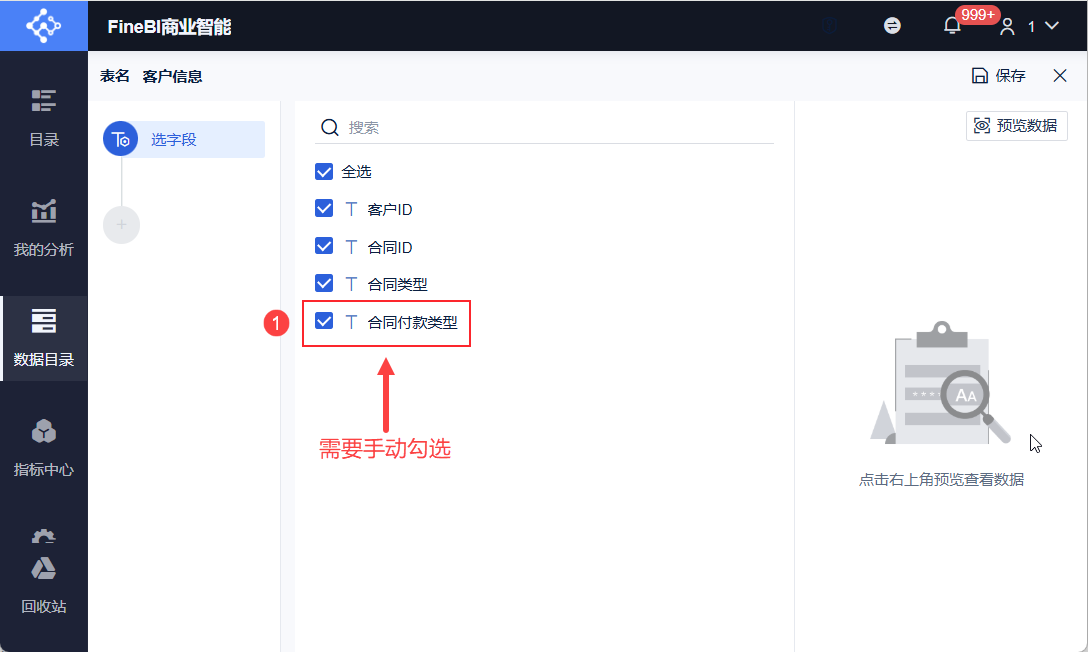 修改 SQL 数据集后,数据表不会直接将添加的字段更新进来,需要点击基础表的「编辑」按钮。手动勾选新增的字段,如下图所示: