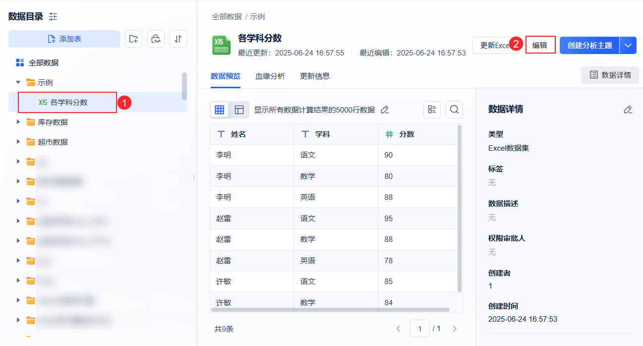 3)上传后,我们可以预览下这张表,是个一维表,点击「编辑」。如下图所示: