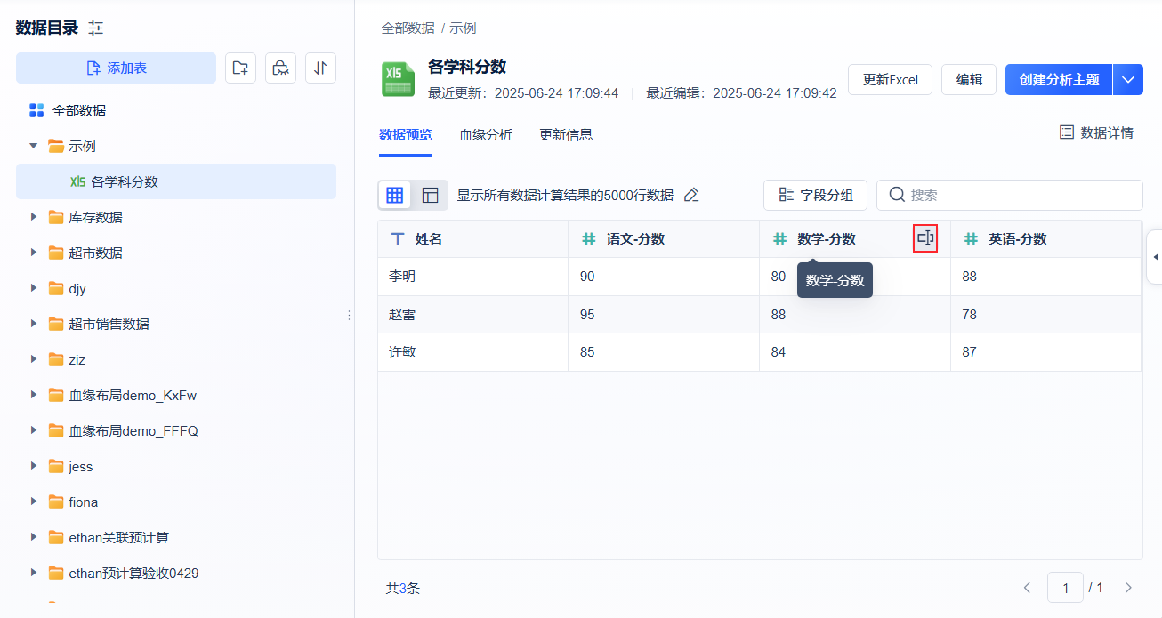 3)保存后退出编辑界面,用户可以在预览界面修改字段名。如下图所示:
