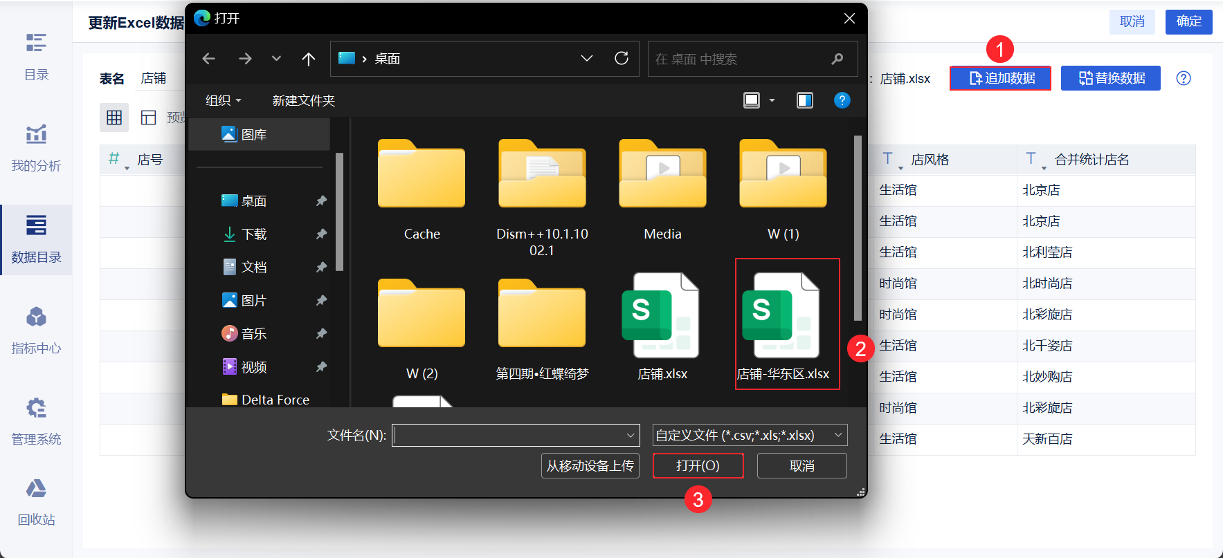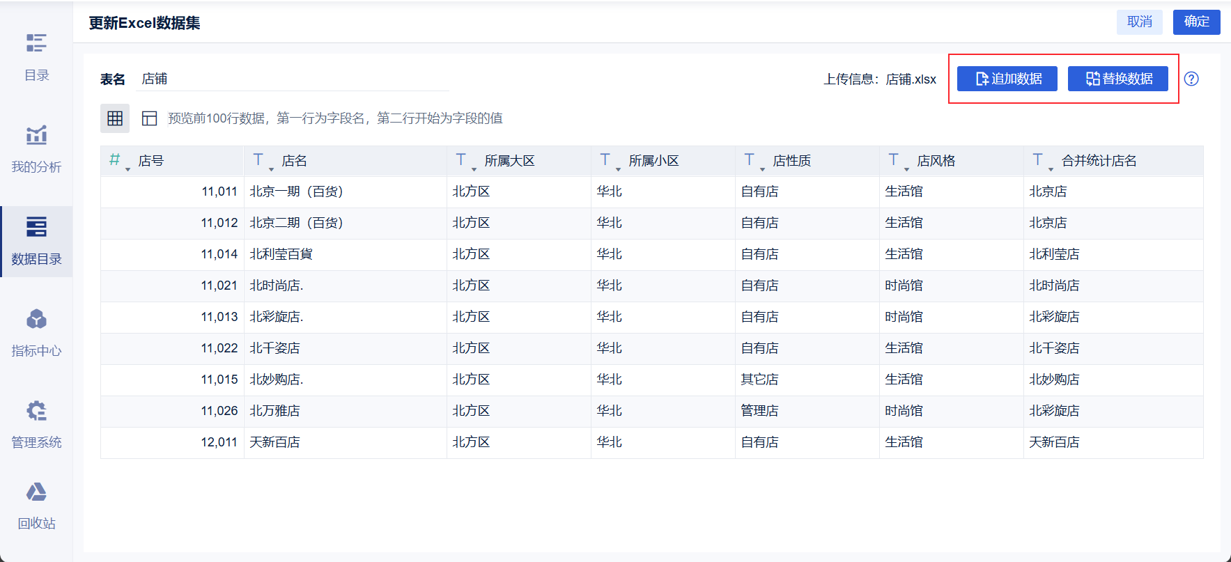 追加数据:是指在原先上传的 Excel 数据表基础上追加增量数据。