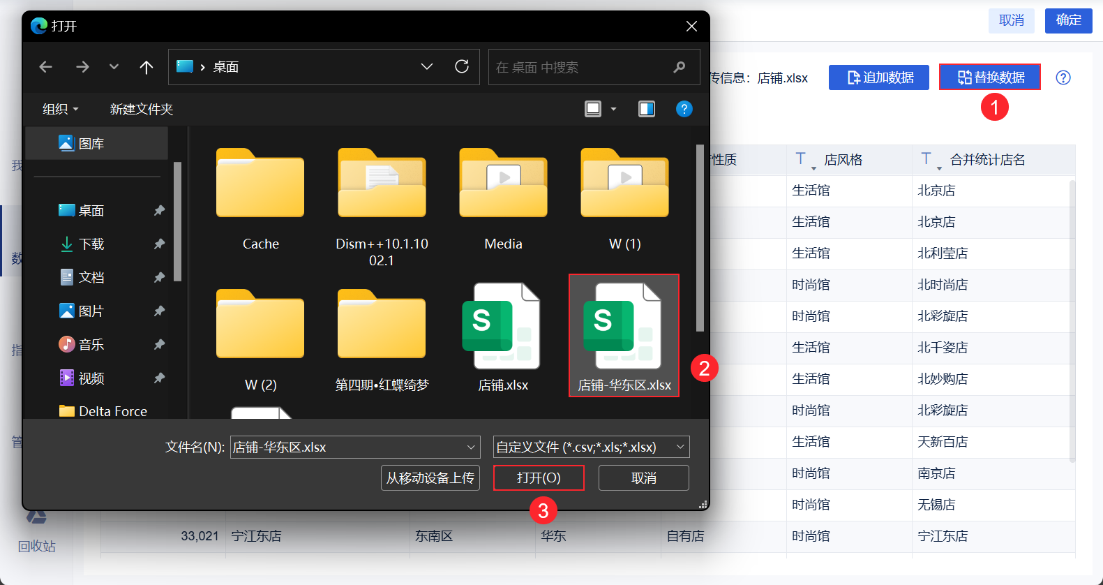 替换数据:是指上传新的 Excel ,替换掉原先上传的数据。