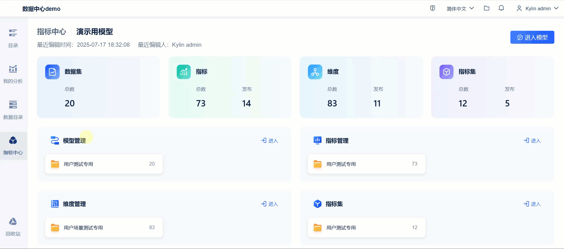 查看用户:全局口径统一,提供指标资产的快速检索链路。
