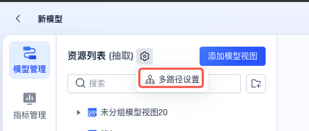 「多路径设置」入口调整至「指标中心>模型管理>资源列表设置>多路径设置」,如下图所示: