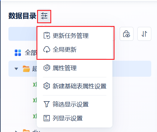 1)数据目录设置下拉可设置「更新任务管理」、「全局更新」。