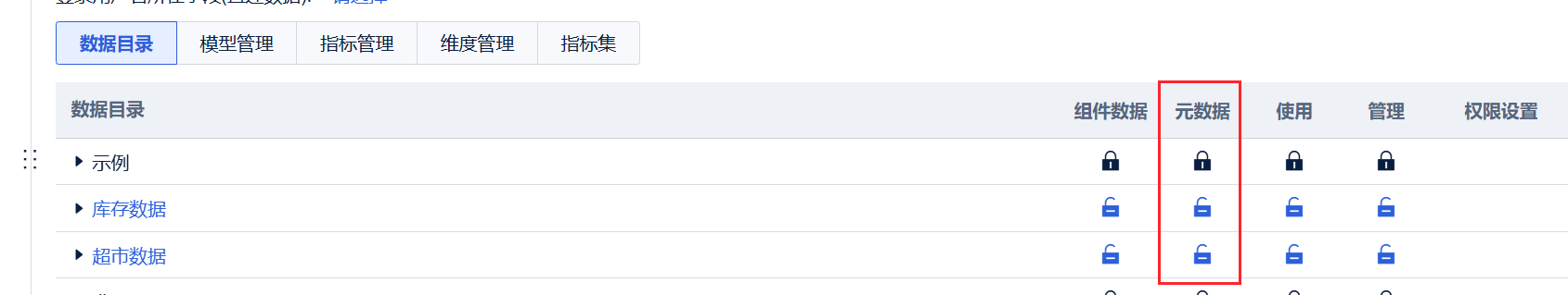 3)「权限管理>数据目录」的「查看」权限改名为「元数据」,表明只能查看数据表的表结构和字段信息,没有详细数据行的查看权限。