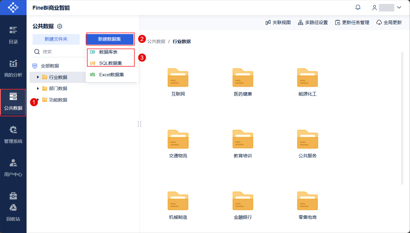 注:如果非管理员用户想要配置数据连接,需要管理员给其分配管理系统下数据连接节点的权限,具体操作请查看 数据连接权限