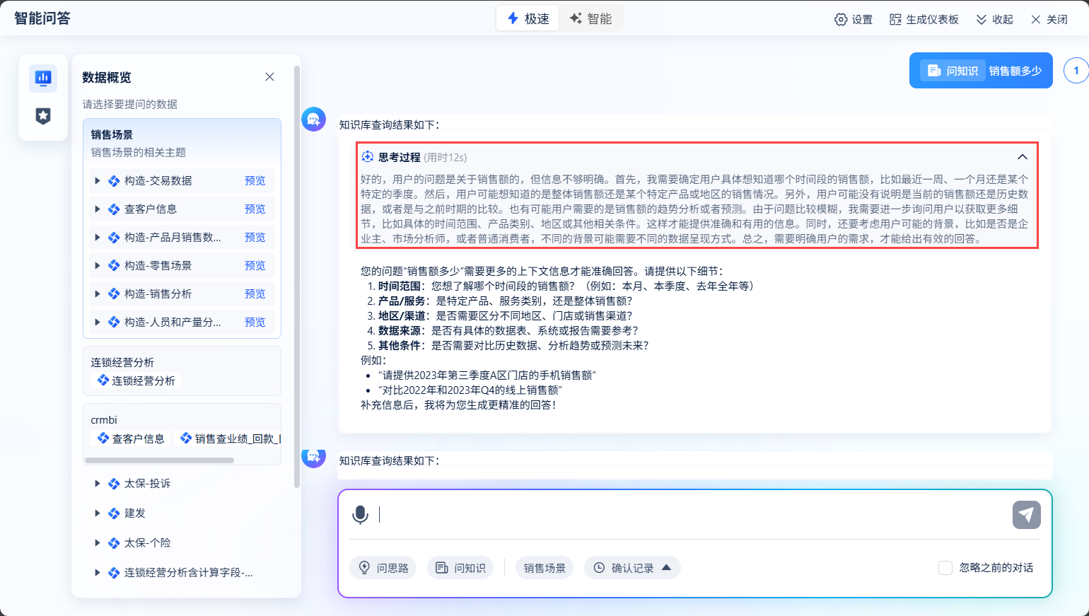 4)智能模式可以处理更多的模糊问题,进行语义澄清