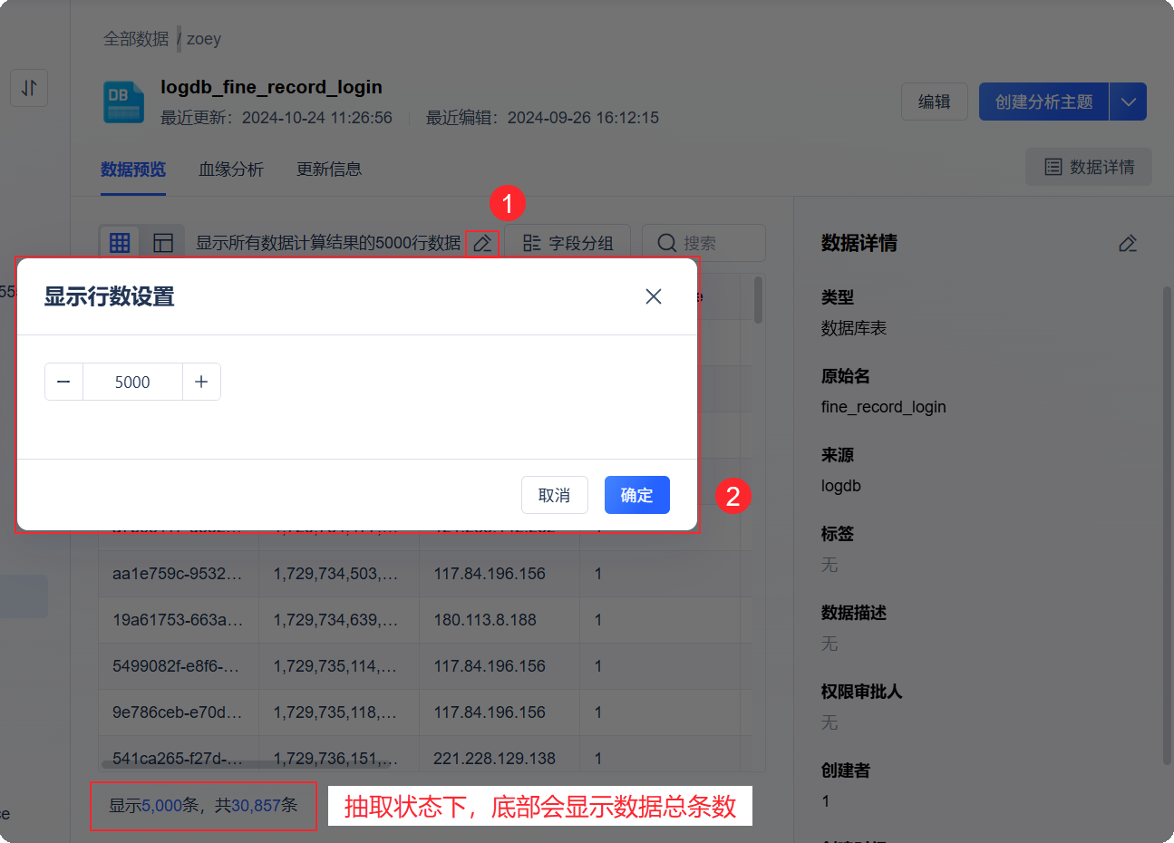 默认显示 5000 行数据,点击编辑可以手动调整展示量,如下图所示: