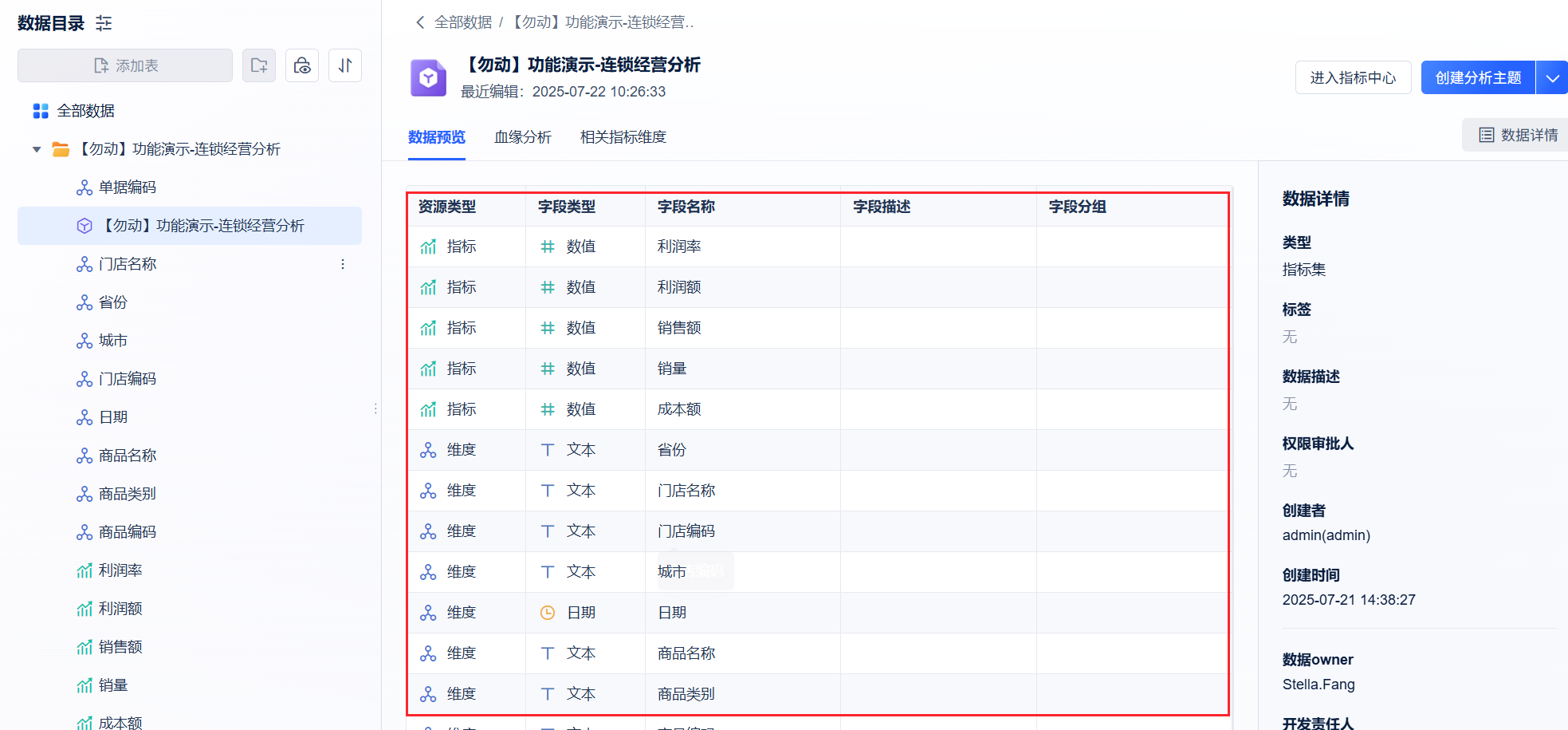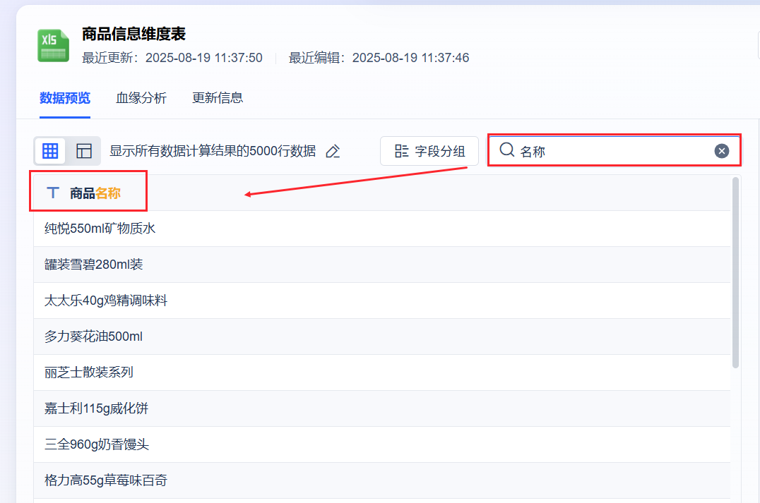 注:指标/维度/指标集/自助数据集不可在「数据预览」界面修改字段名。