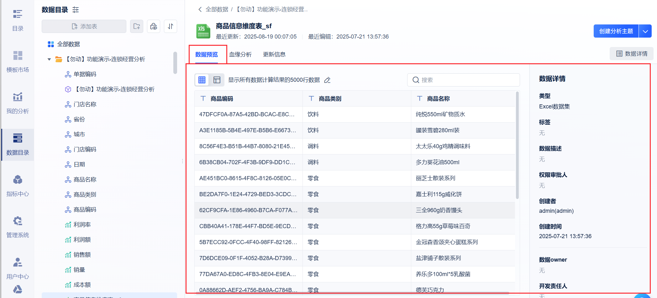在数据目录里,若想要知道数据是谁创建的,最近更新是什么时候,可以点击「数据详情」。如下图所示:
