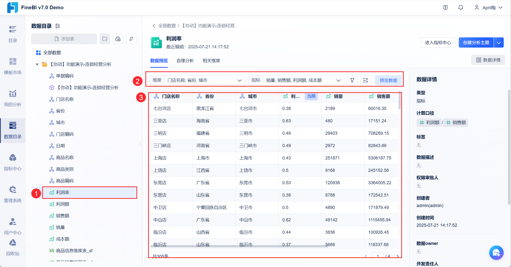 支持设置相关维度和指标信息,添加过滤查看进行数据预览。