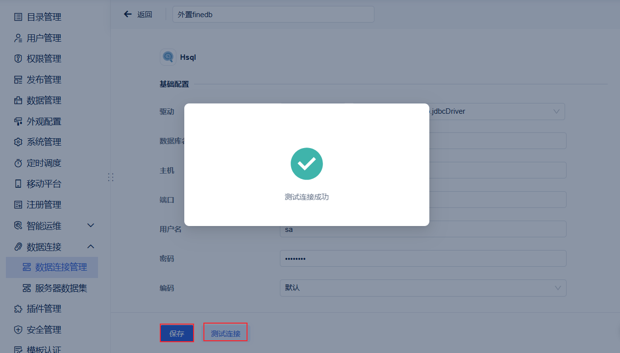 4)点击「测试连接」,若连接成功则点击「保存」,如下图所示: