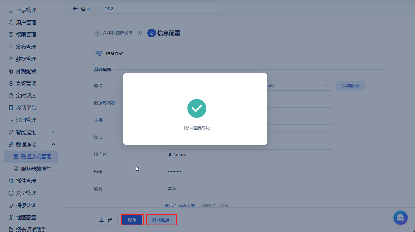 4)点击「测试连接」,若连接成果点击「保存」,如下图所示: