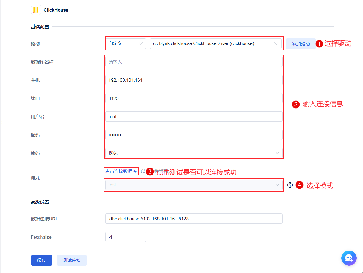 注:若用户使用的是 5.1.19 之前的版本,用户需要手动更改驱动的名字为 cc.blynk.clickhouse.ClickHouseDriver