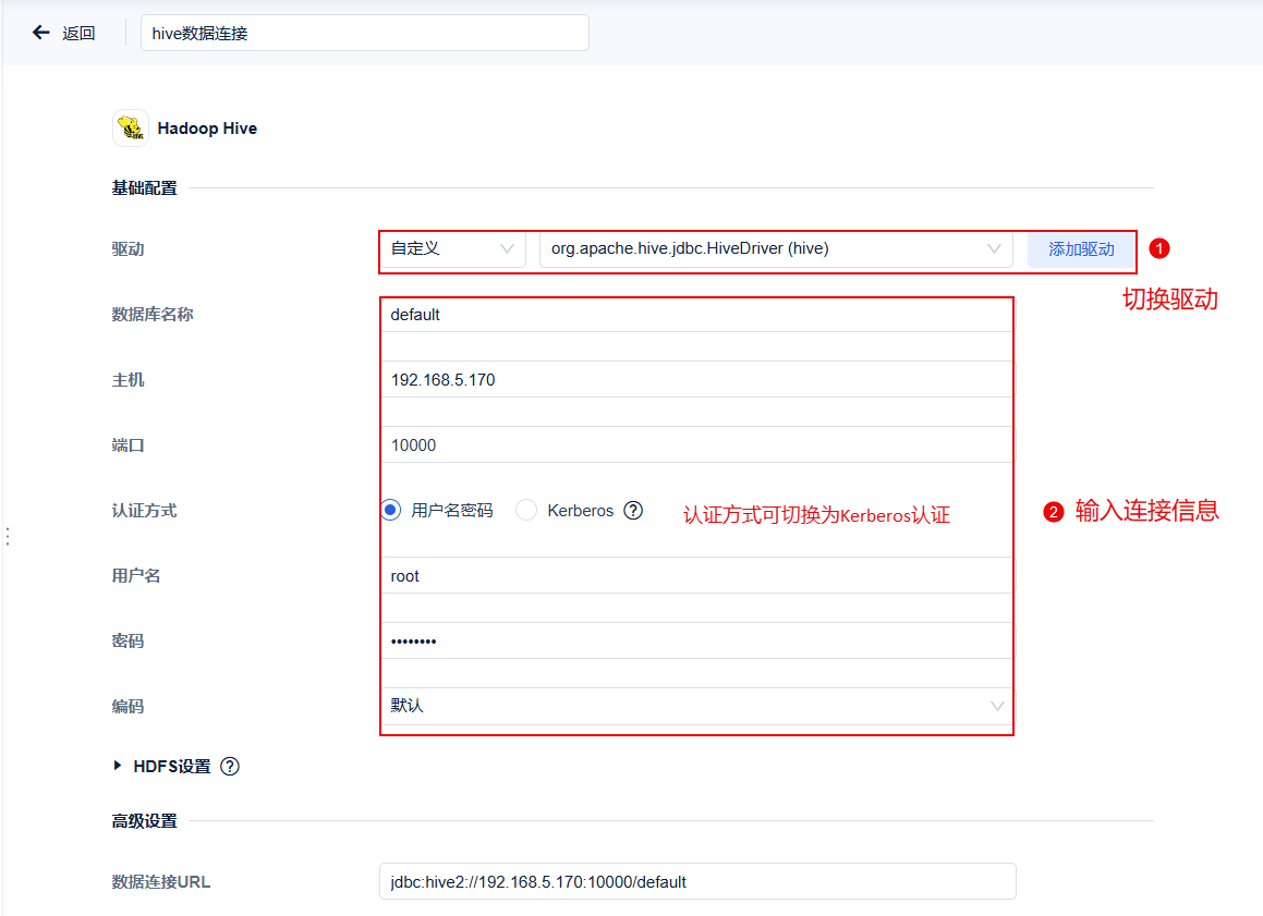 Kerberos 认证方式详情可参见:数据连接 kerberos 认证
