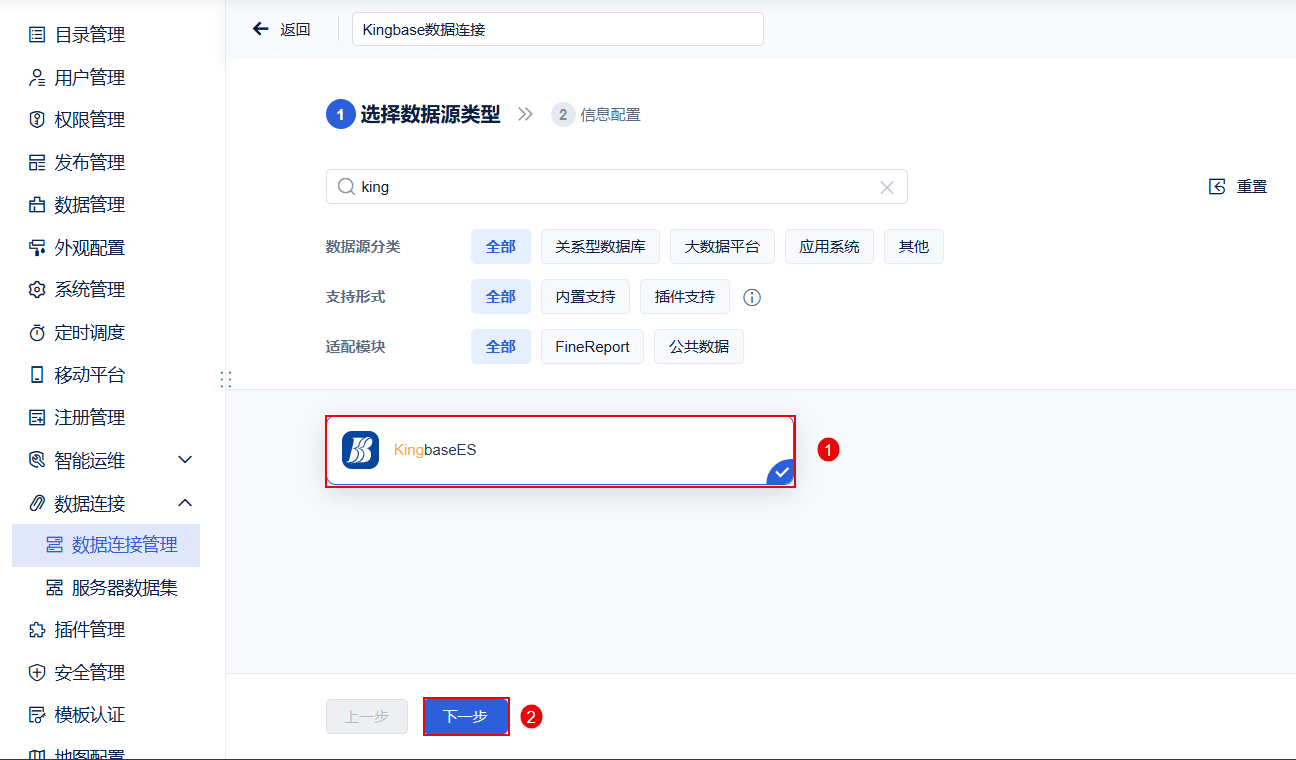 注:如果非管理员用户想要配置数据连接,需要管理员给其分配管理系统下数据连接节点的权限,具体操作请查看 数据连接权限