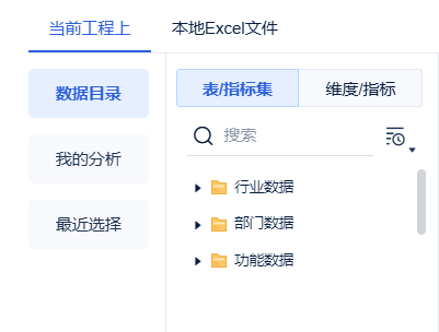 可以选择「数据目录」、「我的分析」、「最近选择」的数据。如下图所示: