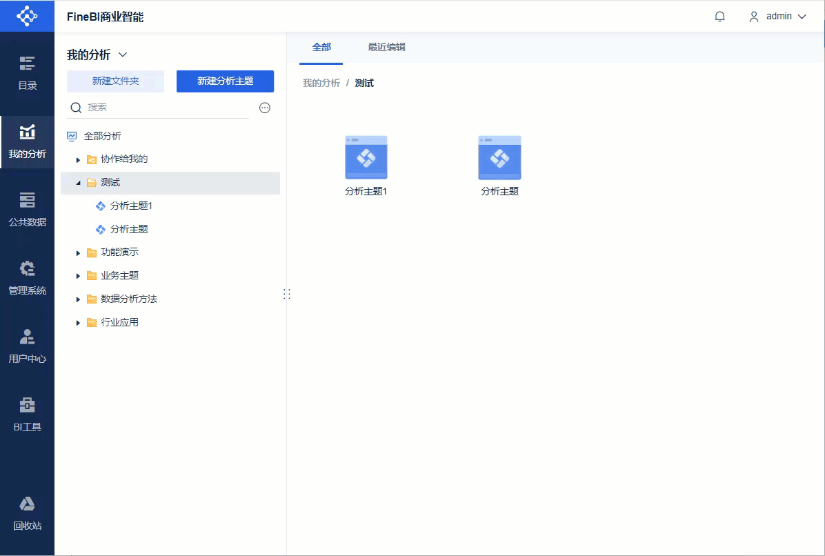 在「我的分析>新建分析主题」下可以添加「当前工程上」的数据。