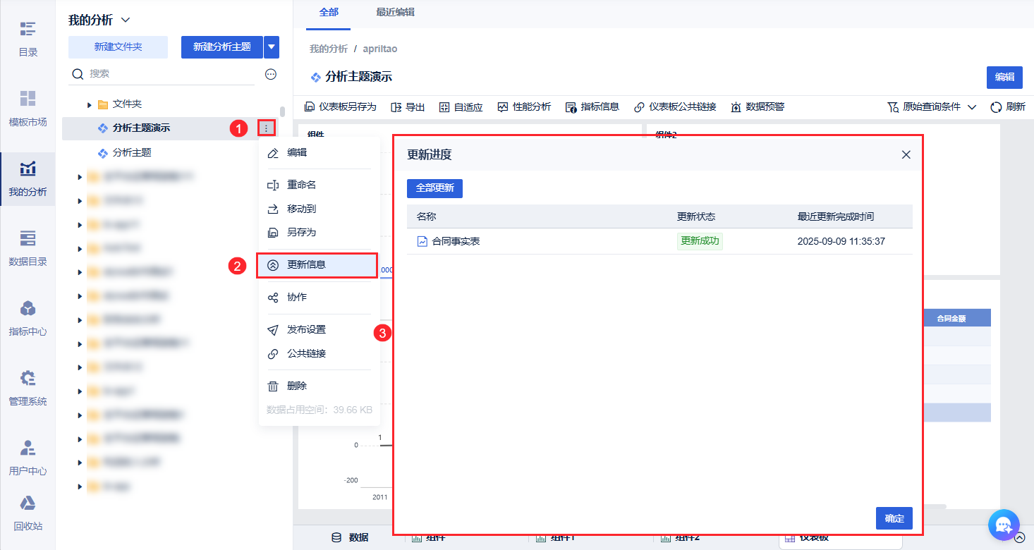 在 BI 中进行的数据分析和可视化展示都是通过「分析主题」进行的,此时就需要对制作好的分析主题进行管理。