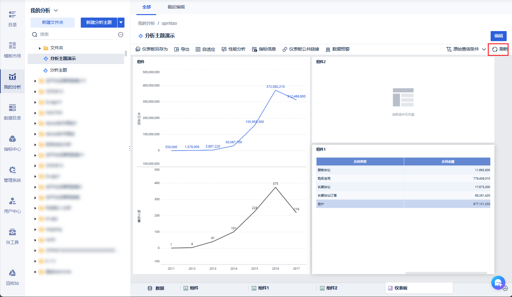 注:部分功能的按钮在左侧分析主题列表和右侧预览区域都有设置,这两处的功能是一样的效果,本文只描述左侧列表区域的功能截图和实现效果。