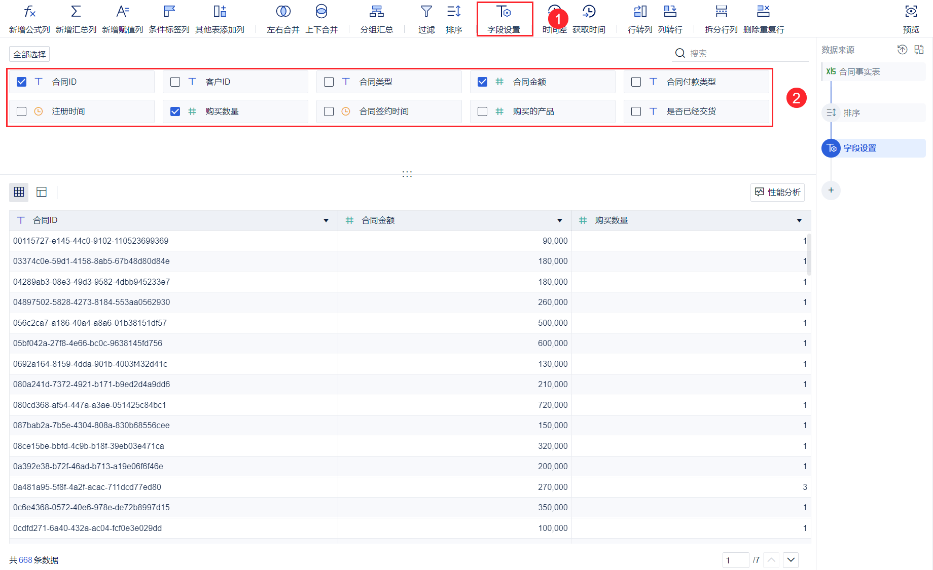 1)点击下载示例数据「合同事实表」,新建分析主题,添加数据集,进入「编辑」数据界面;