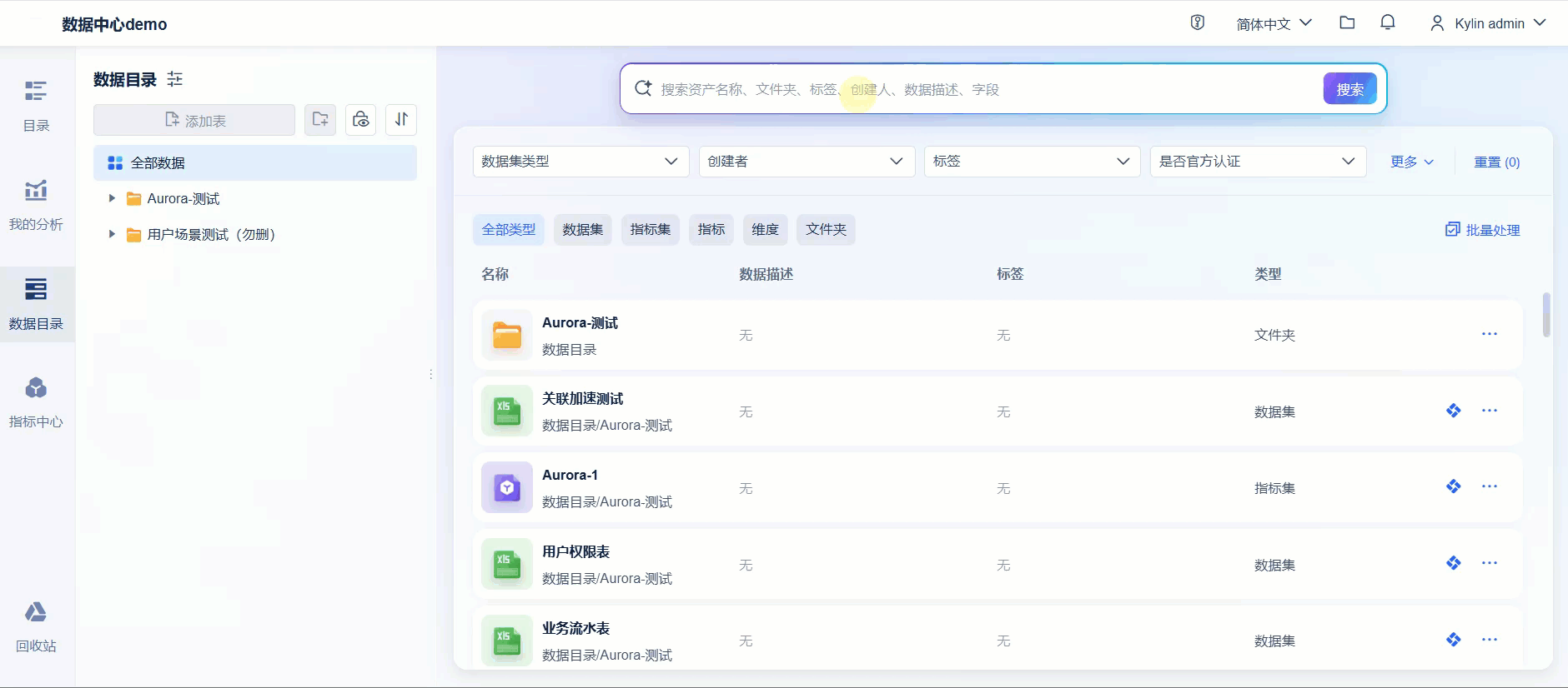 查看用户:全局口径统一,提供指标资产的快速检索链路。