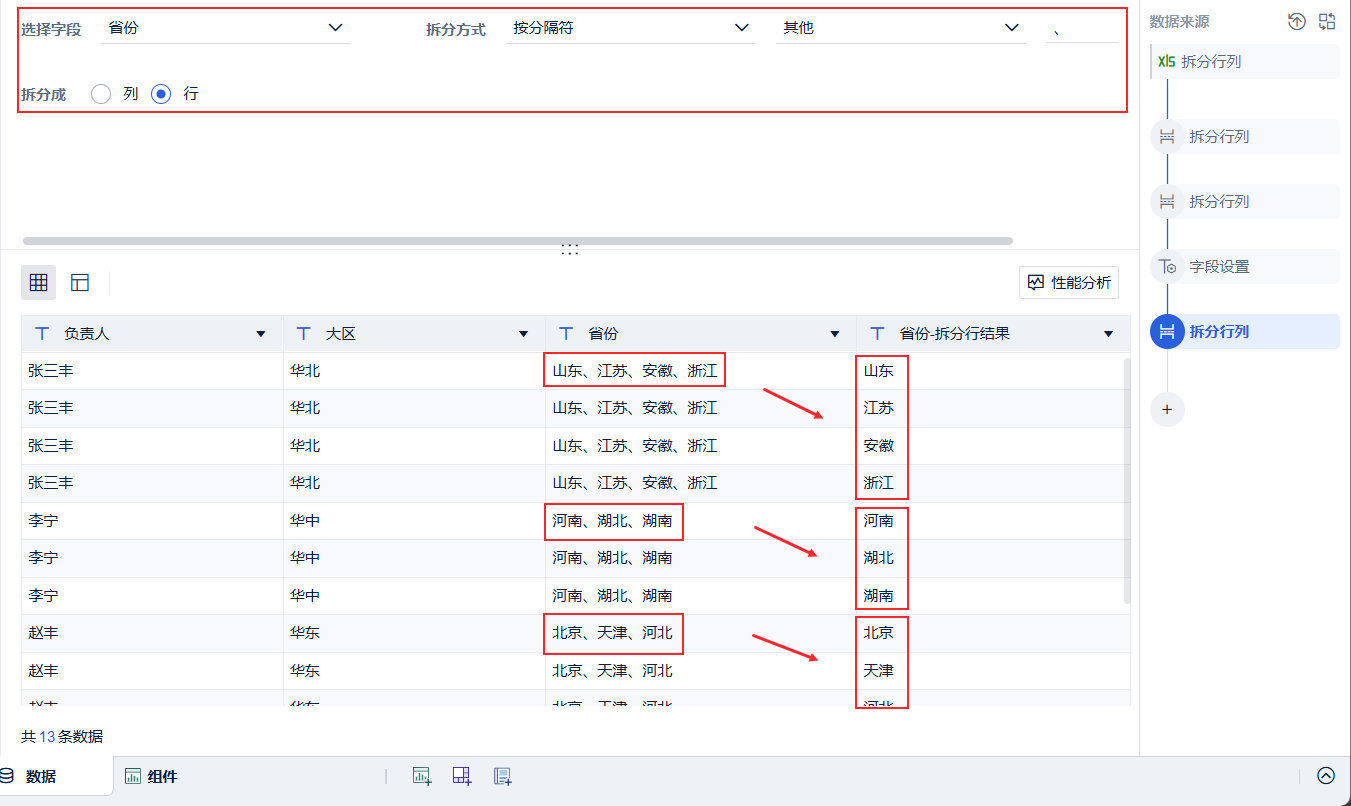 3)想将「省份」拆分成列,一个字段列中只有一个省份。