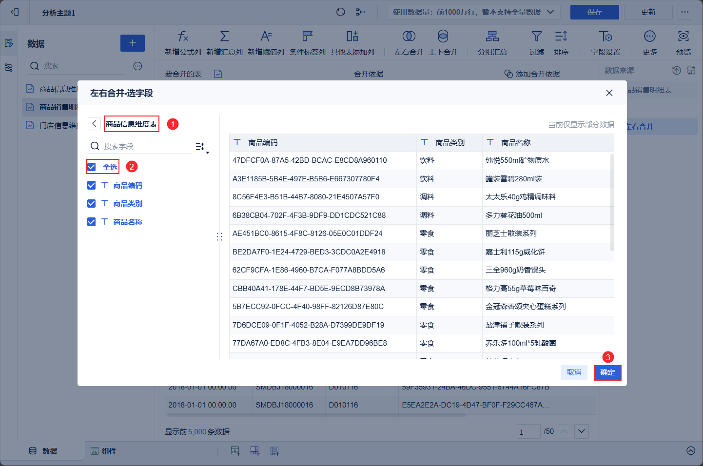 同理,继续进行「左右合并」,全选「门店信息维度表」的字段,完成后效果如下图所示: