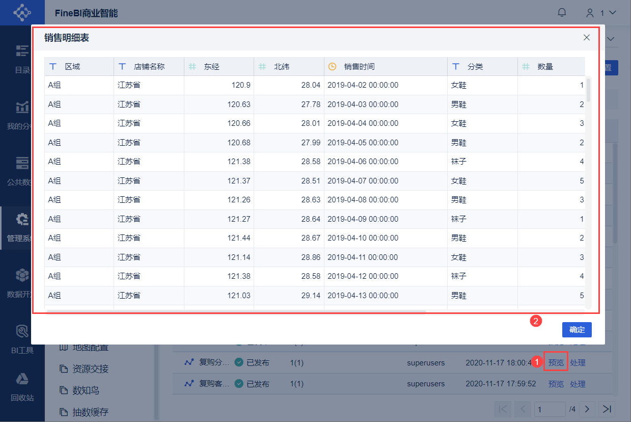 管理员登录FineBI系统,点击「管理系统>发布管理」,可查看申请发布内容的具体信息。