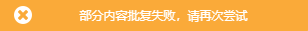 发布管理处理过程中,点击「确定」按钮,提示「部分内容批复失败,请再次尝试」。如下图所示: