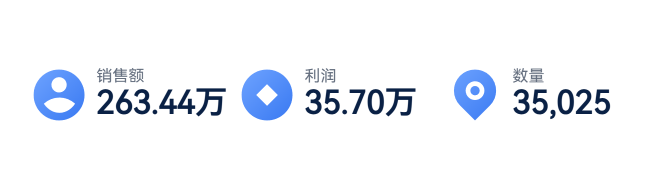 5)为指标卡插入图标,例如来给销售额、利润、数量分别插入图标。