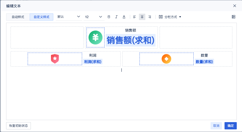 3)修改分栏,改变指标卡内容布局,每个分栏内都可以输入内容。