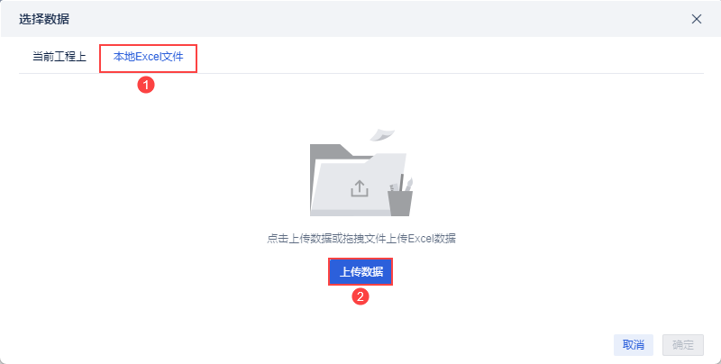 2)点击「本地Excel文件>上传数据」,上传表数据。如下图所示: